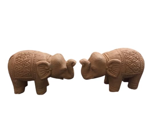 Amor Toy Mitti Ki Handcrafted Beautiful Terracotta Baby Elephant hati Animal Sl & Figurine for Home Showpiece for Home Office Living Room Vastu Wealth Income…