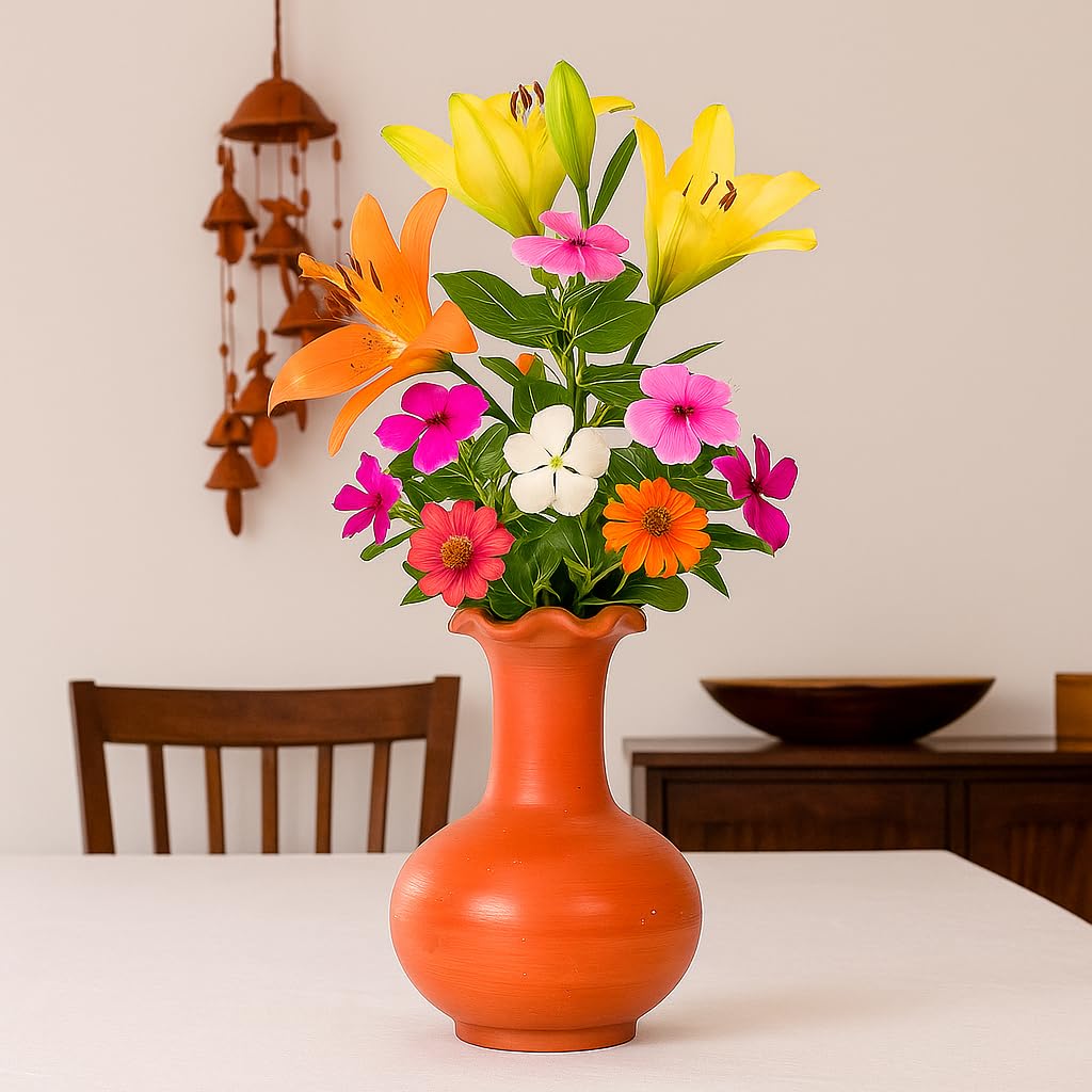 - Soil/Clay Small Flower Vase: Handcrafted from Natural Mitti Clay For Home, This Flower Pot Vase Adds a Touch Of Eco-Friendly Charm To Your Living Room or Office Space.